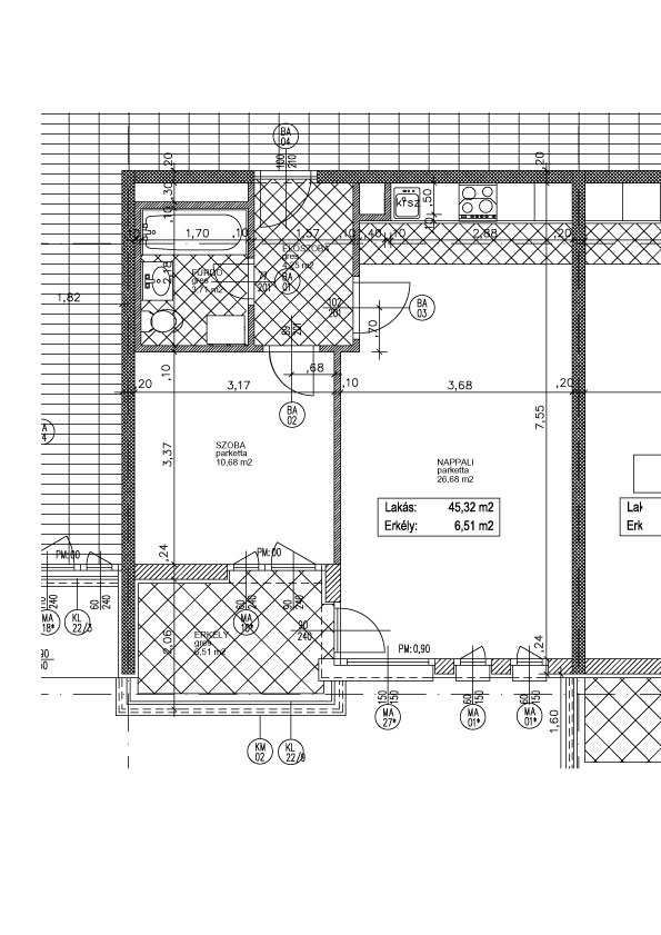 LAKÁS: 45,32 m2 ERKÉLY: 6,51 m2