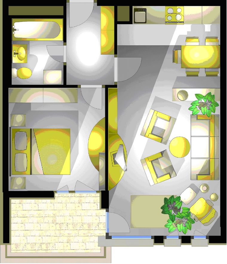 Nappali+konyha: 26,68 m2 Előtér: 4,25 m2 Szoba: 10,68 m2 Fürdő: 3,71 m2