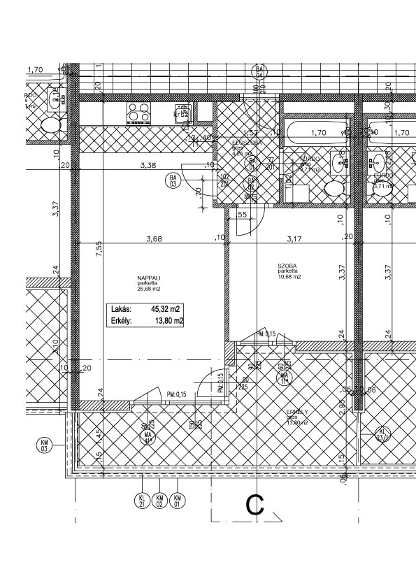 LAKÁS: 45,32 m2 ERKÉLY: 13,80 m2