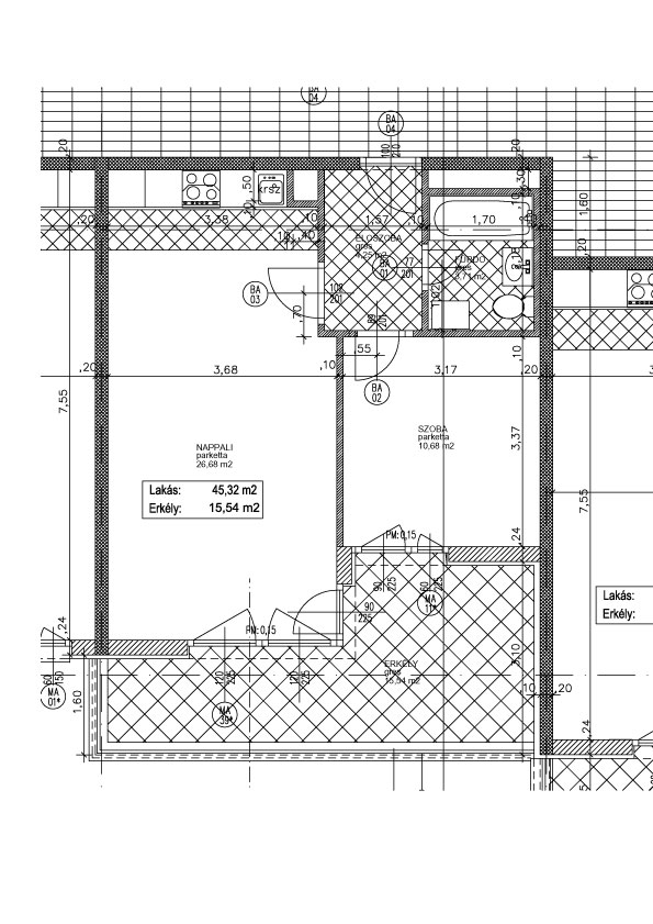 LAKÁS: 45,32 m2 ERKÉLY: 15,54 m2