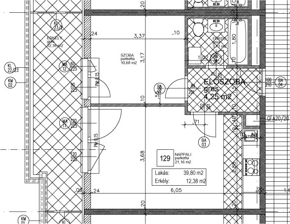 LAKÁS: 39,80 m2 ERKÉLY: 12,38 m2