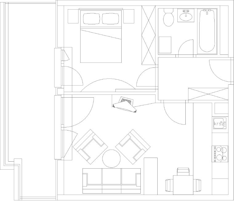 Nappali+konyha: 21,16 m2 Előtér: 4,25 m2 Szoba: 10,68 m2 Fürdő: 3,71 m2