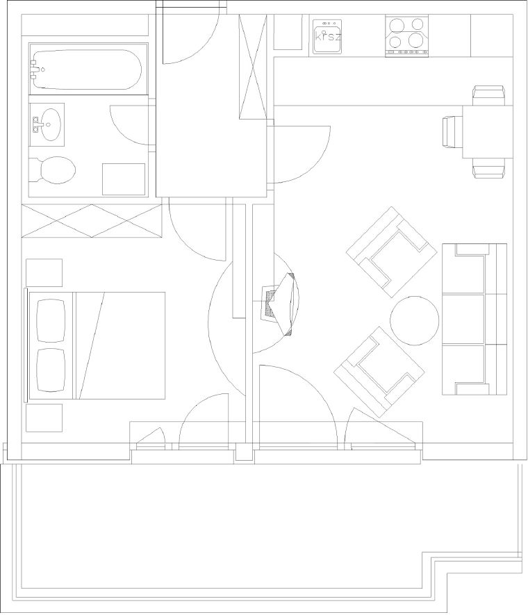Nappali+konyha: 21,16 m2 Előtér: 4,25 m2 Szoba: 10,68 m2 Fürdő: 3,71 m2