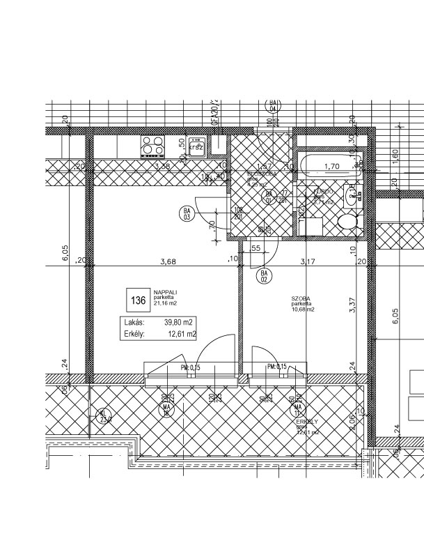 LAKÁS: 39,80 m2 ERKÉLY: 12,61 m2