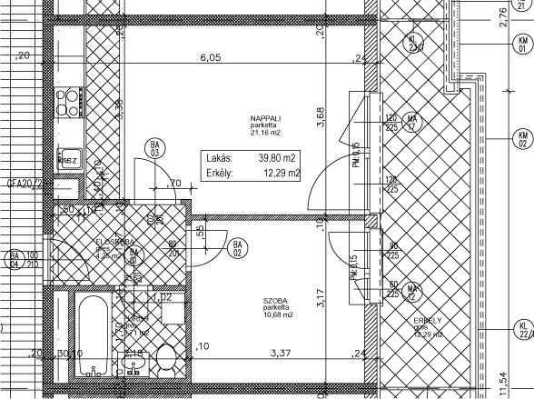 LAKÁS: 39,80 m2 ERKÉLY: 12,29 m2
